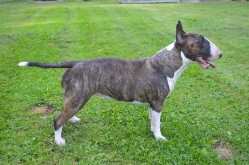 Unsere sechs Welpen (6 Rüden; 1 Rüde bereits vergeben) sind noch auf der Suche nach ihrem perfekten Zuhause. Die Hunde sind allgemein sehr aufmerksam, neugierig, unternehmungslustig, verschmust und besonders gelehrig. Darum suchen sie junge oder jung gebliebene, aktive und dynamische Gefährten, die mit ihnen gemeinsam die Welt erkunden oder einfach auch mal auf der Couch lümmeln möchten und sich an dem liebevollen und leicht verrückten Charakter/Wesen eines Miniatur Bullterriers erfreuen. Die Welpen aus der Verbindung des Rüden „Johnny Cash“ und der Hündin Little White Gladiators „I am Ika“. Die Welpen sind bei Abgabe bestens sozialisiert, mehrfach entwurmt, gechipt, altersgerecht geimpft, tierärztlich untersucht und haben einen EU-Heimtierausweis und FCI/VDH/DCBT-Ahnentafel, somit sind sie beim Auszug in ihr neues Zuhause startklar für neue Abenteuer. Untersuchungen der Eltern (Ika und Johnny Cash) "clear by birth", alle ohne Befund:LAD - Träger;LP, PLL, Augenuntersuchung, Nieren- und Herzuntersuchung zzgl. Johnny Cash: Audio ohne Befund Sie wachsen bei uns im familiären Umfeld, mit Rudelanschluss und liebevoller Pflege nach den strengen Regeln des DCBT e.V. (Deutscher Club für Bullterrier) auf und werden auf das Leben und seine Herausforderungen bestens vorbereitet. Geboren wurden die Welpen am 13.04.2020.Sofern die Kleinen dein Interesse geweckt haben, so freuen wir uns über eine Nachricht oder einen Anruf. Bestimmt gibt es noch Fragen zu klären.